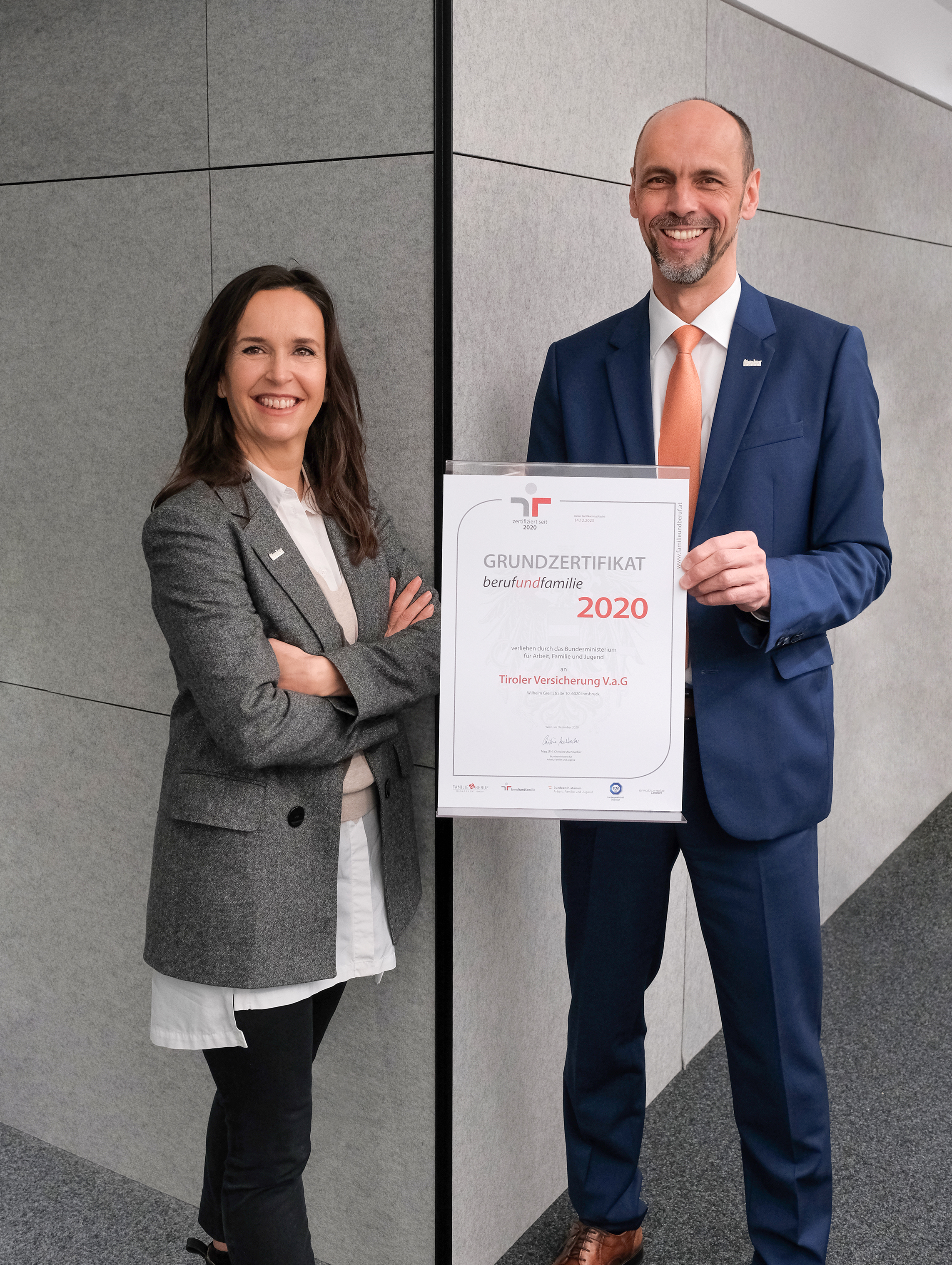 Die TIROLER VERSICHERUNG hat im Land eine Vorreiterposition inne, was familien- und lebensphasengerechte Unternehmenskultur angeht. In einem aufwendigen Auditprozess wurde die Personalpolitik der TIROLER unter die Lupe genommen - nun verlieh das Bundesministerium für Arbeit, Familie und Jugend das staatliche Gütezeichen „Audit berufundfamilie“.