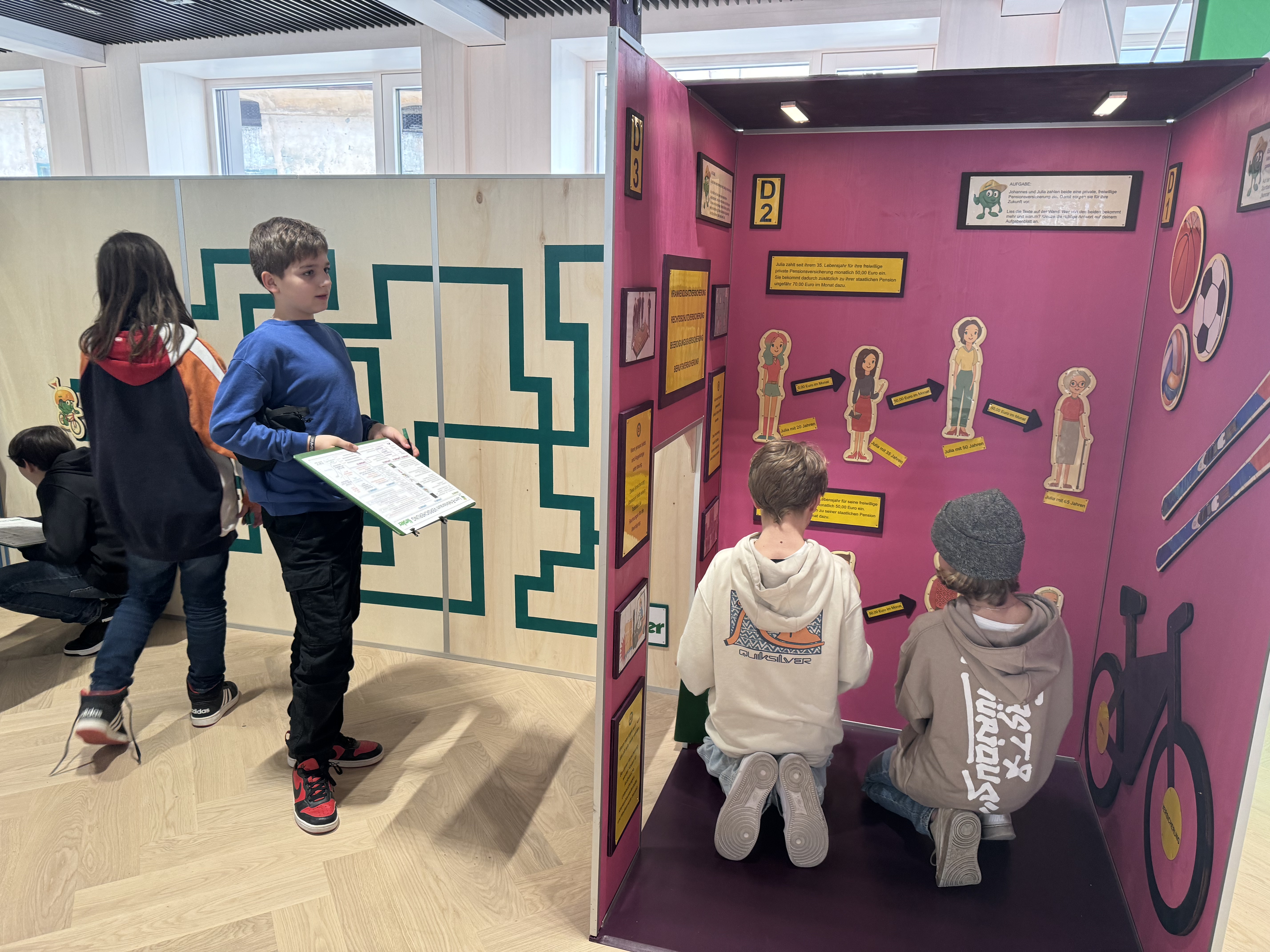 Vorab führen geschulte Pädagog*innen die Kinder in das Thema ein, bevor sie auf Schnitzeljagd durch die Welt der Versicherung gehen.